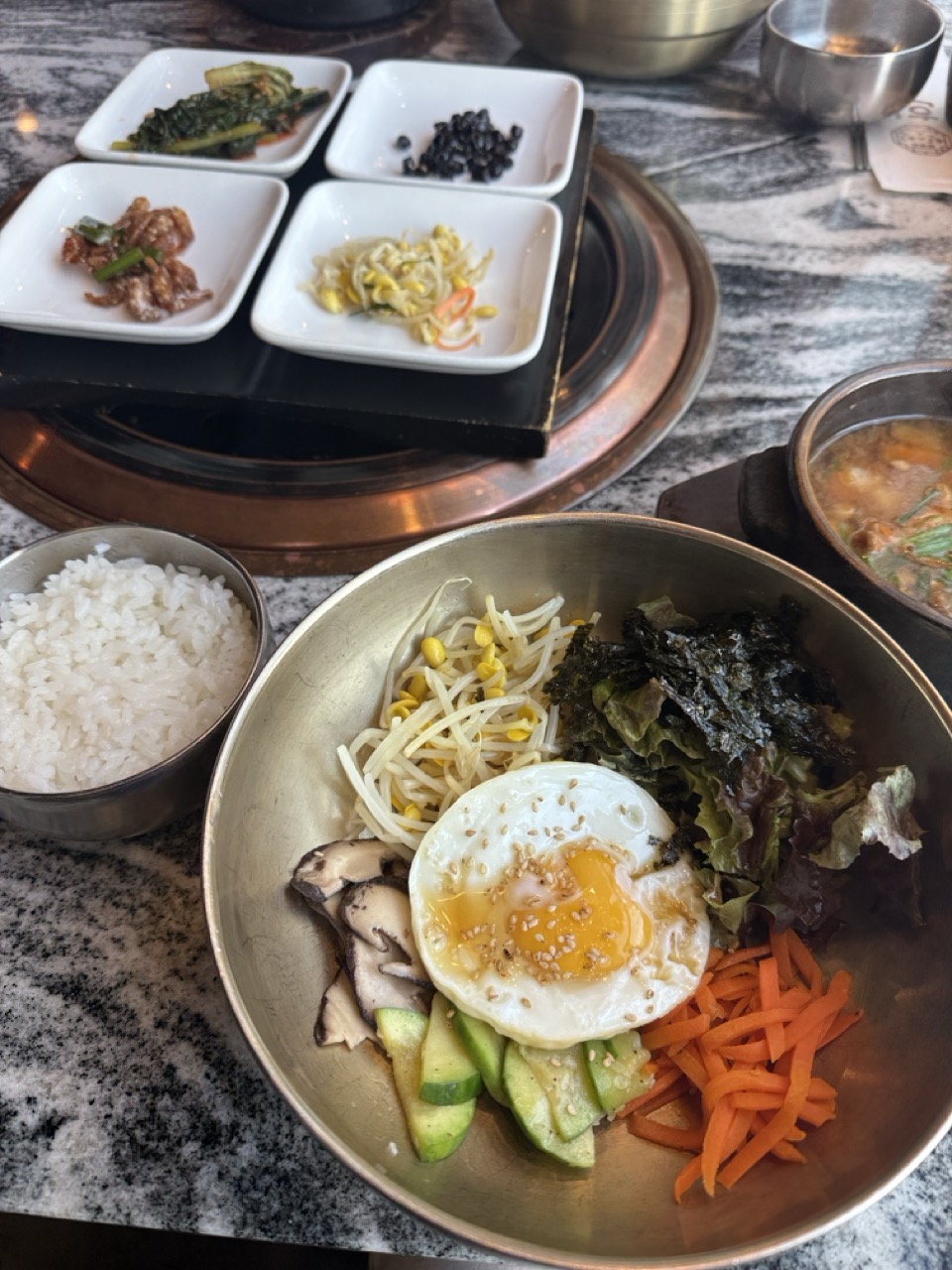 ํ•œ์šฐ ์†Œ๊ณ ๊ธฐ ๋œ์žฅ์ฐŒ๊ฐœ๋Š” ๊นŠ๊ณ  ๊ตฌ์ˆ˜ํ•œ ๋ง›์œผ๋กœ ์†์„ ๋“ ๋“ ํ•˜๊ฒŒ ์ฑ„์›Œ์คฌ๊ณ , ์‹ ์„ ํ•œ ๋‚˜๋ฌผ ๋น„๋น”๋ฐฅ์€ ๊น”๋”ํ•˜๊ณ  ๊ฑด๊ฐ•ํ•œ ๋А๋‚Œ ๊ทธ๋Œ€๋กœ์˜€์–ด์š”.