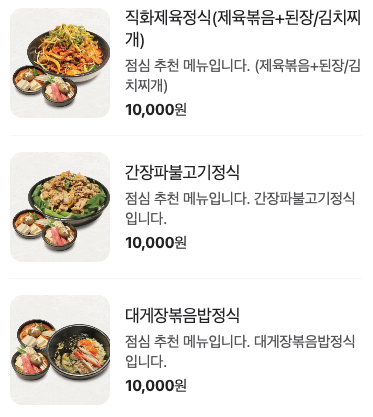 ์งํ์ ์ก์ ์, ๊ฐ์ฅํ๋ถ๊ณ ๊ธฐ์ ์, ๋๊ฒ์ฅ๋ณถ์๋ฐฅ์ ์ ๋ฑ ๋ค์ํ ์ ํ์ง๊ฐ ์์ด์ ๊ณจ๋ผ ๋จน๋ ์ฌ๋ฏธ๊ฐ ์๋ต๋๋ค.